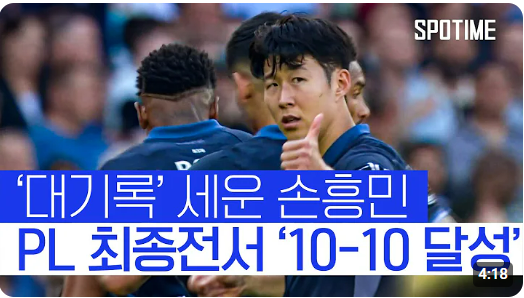 최근 토트넘 vs 셰필드의 경기에서 손흥민 선수가 10골 10 도움을 하게 되면서 관련 하이라이트 영상이 큰 화제가 되었는데요. 대기록을 세운 손흥민의 대활약 영상은 바로 위에서 볼 수 있으니 확인해 주세요!