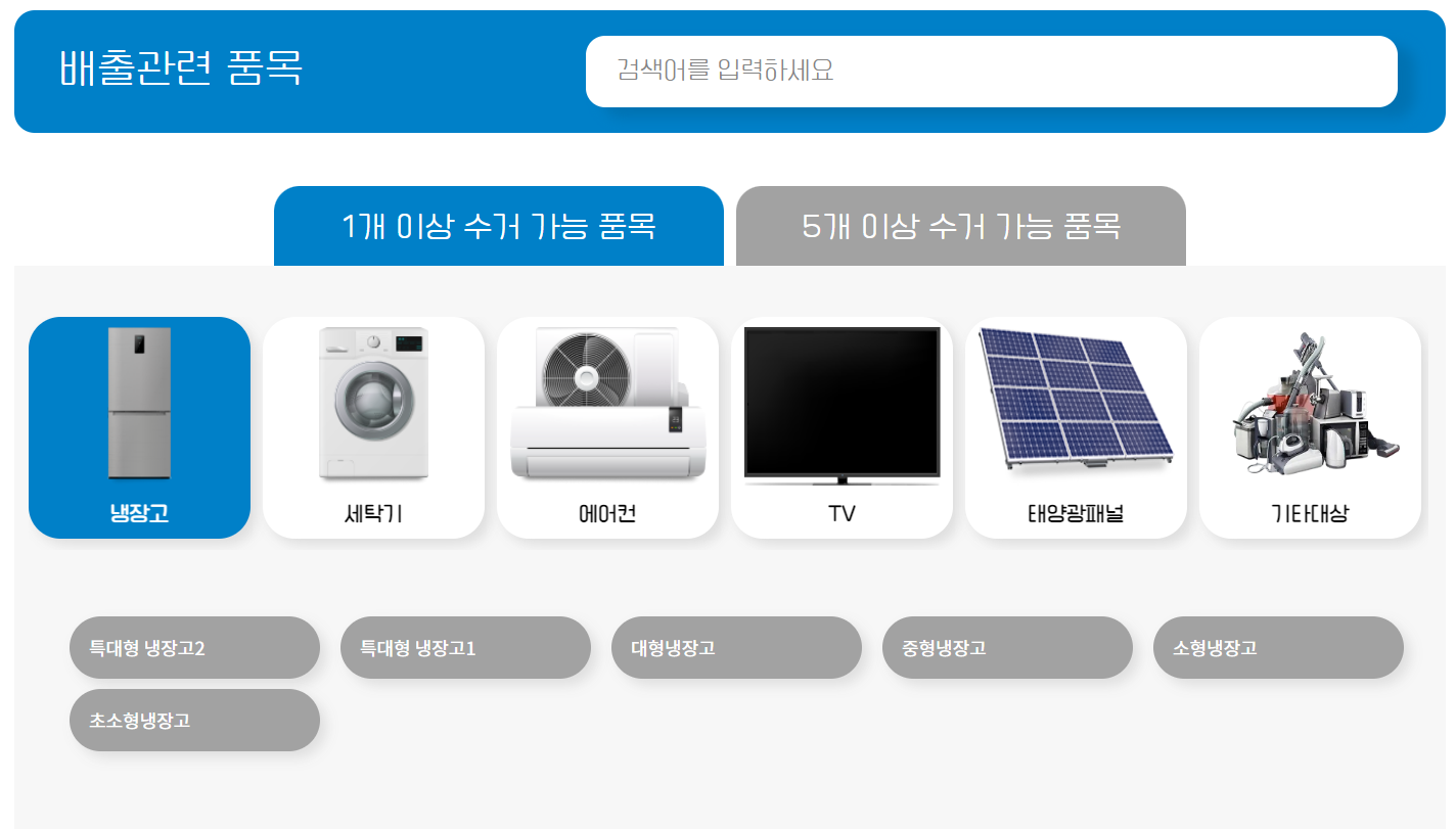 배출 관련 품목이 안 뜬다면, 검색하기를 통해 가전을 찾을 수 있으니 참고해 주세요!