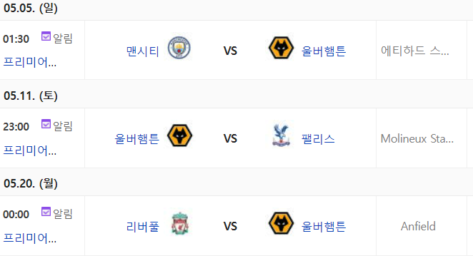 울버햄튼 경기일정 안내