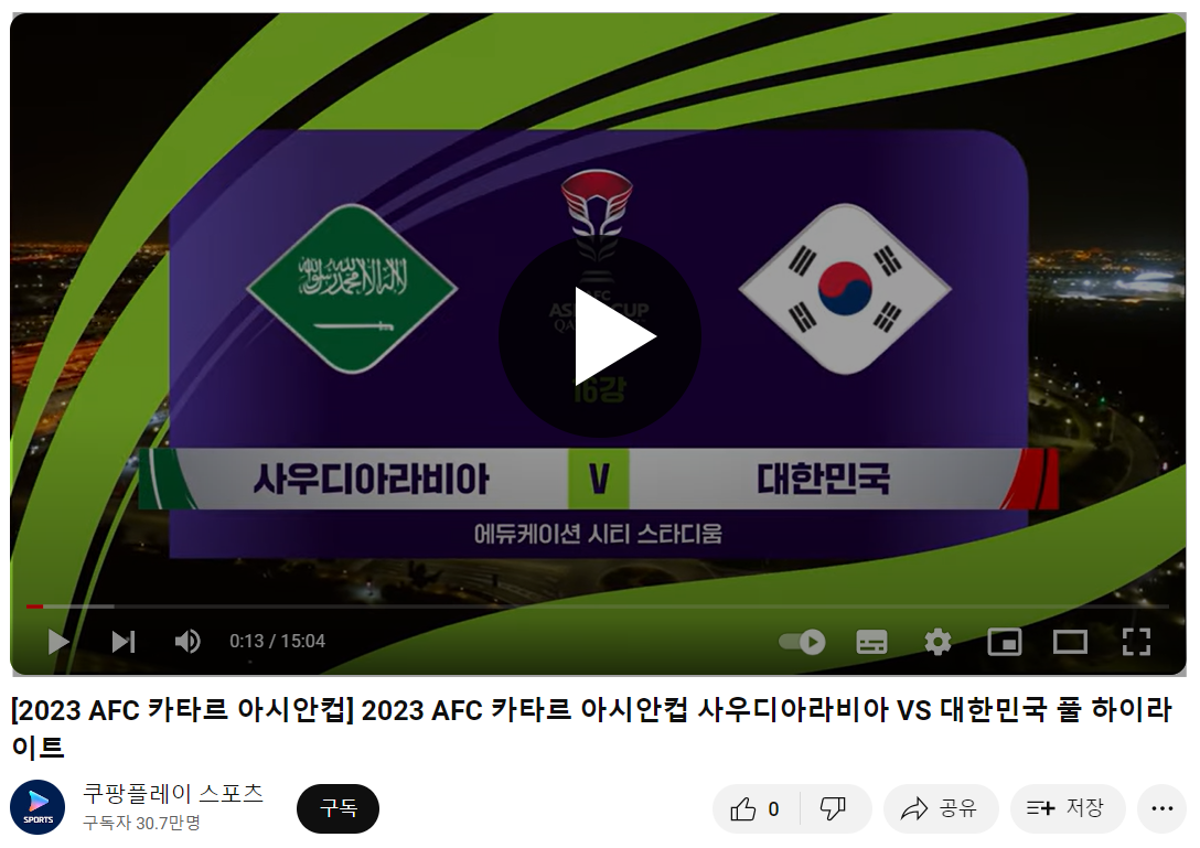 카타르 아시안컵의 하이라이트 주요 장면이 궁금하신 분들은 쿠팡플레이(👈여기 접속) 신규가입 시, 30일 무료 이용권 혜택을 받으시면 보실 수 있습니다.