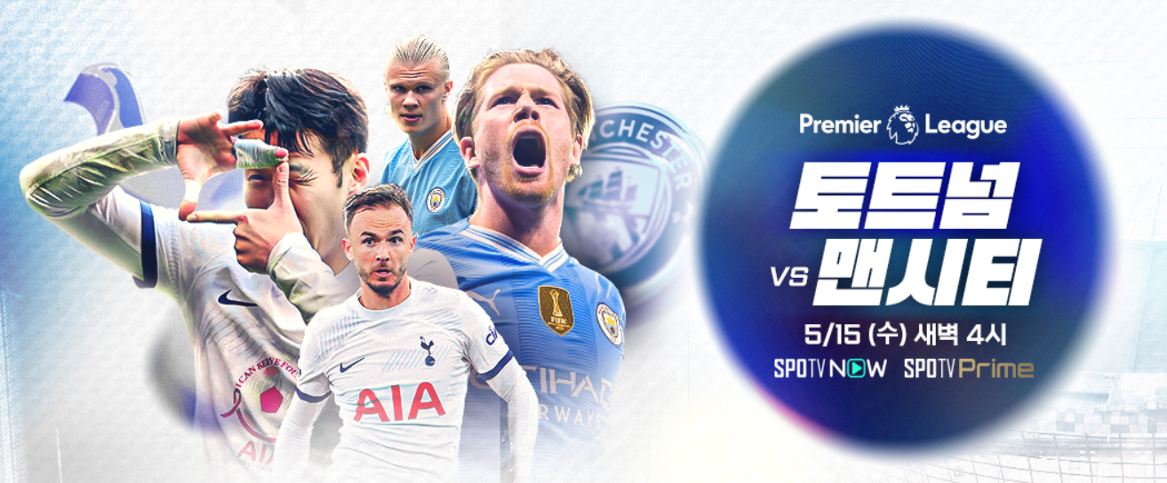 5월 15일 수요일 새벽 4시에 열리는 토트넘과 맨시티의 축구경기를 회원가입 없이 한방에 보고 싶다면, 아래 축구중계 무료 사이트 이용하시면 바로 볼 수 있습니다.