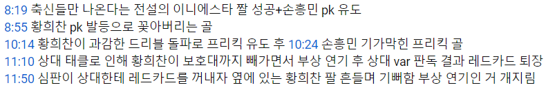 바쁜 분들은 아래 주요 하이라이트 시간표를 참고하셔서 중요 축구장면들을 놓치지 마시길 바랍니다.